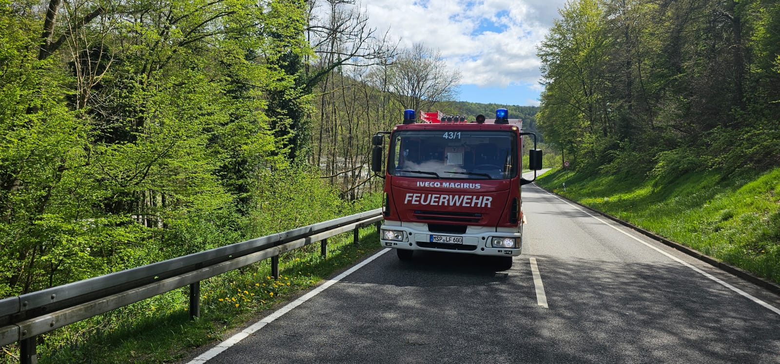 Am 19.04. wurde die Feuerwehr Hasloch um 14:07 Uhr zu einem THL-Einsatz mit dem Stichwort „Baum auf Straße“ alarmiert.